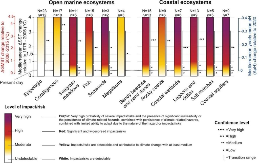 Publication originale : Hassoun, A.E.R., Mojtahid, M., Merheb, M. et al. Climate change risks on key open marine and coastal mediterranean ecosystems. Sci Rep 15, 24907 (2025). https://doi.org/10.1038/s41598-025-07858-x