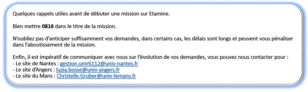 Etape 2 – Saisie d’une demande de mission dans Etamine